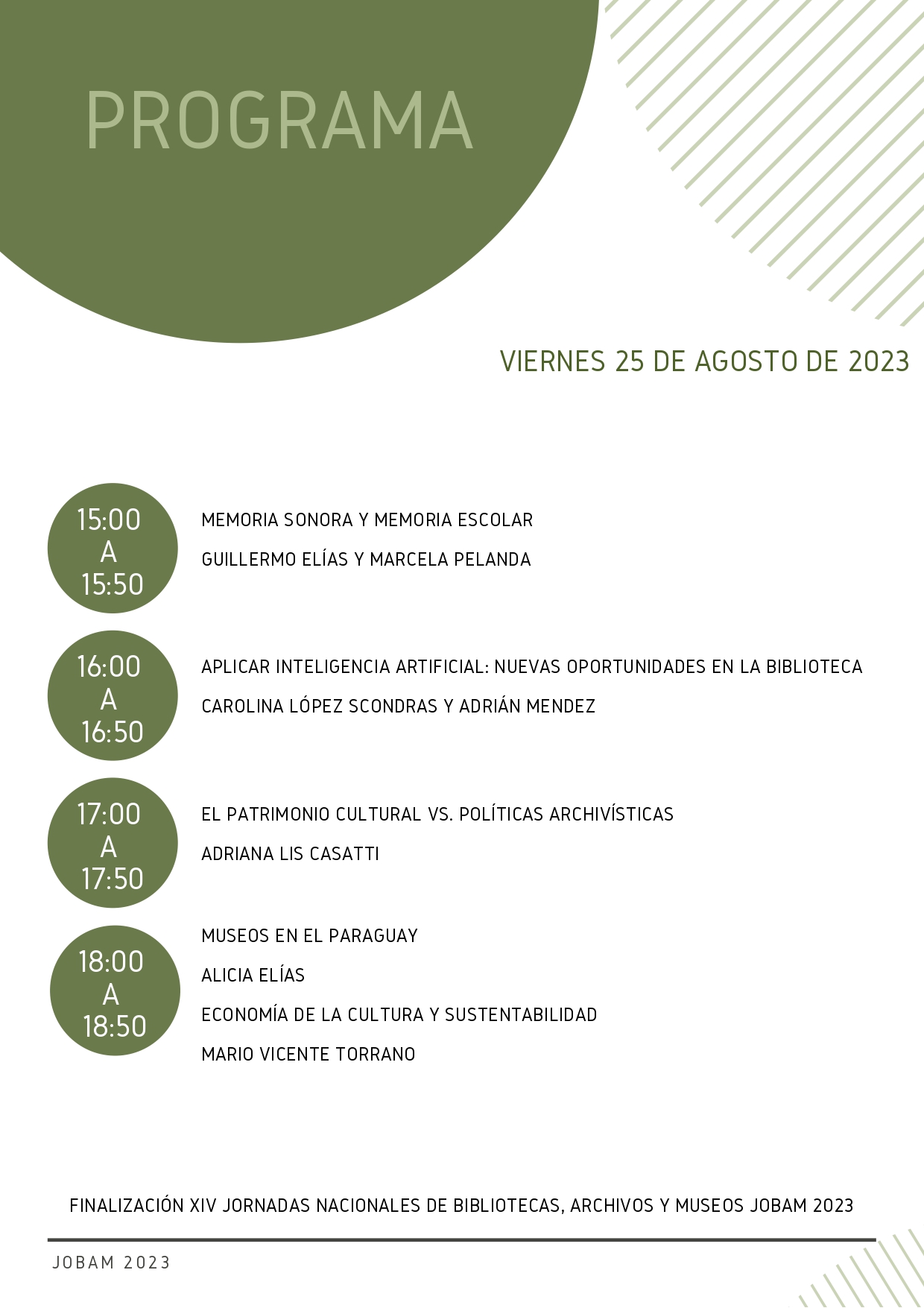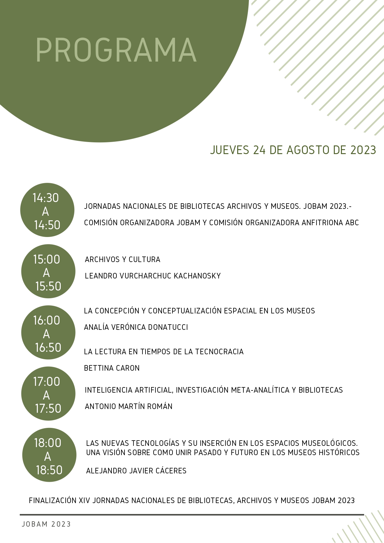 Programa XIV Jornadas Nacionales de Bibliotecas, Archivos y Museos.