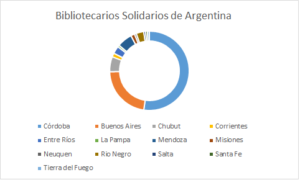 - Buenos Aires: 29 Bibliotecarios Solidarios (Azul, Bahía Blanca, Buenos Aires, Ciudad Autónoma de Buenos Aires, Del Viso – Pilar, Esteban Echeverría, La Plata, Loma Hermosa, Mar del Plata, Monte Grande, Necochea, Ramos Mejías, Ranchos, Saldungaray, San Miguel del Monte, Tres Arroyos y Ezeiza)